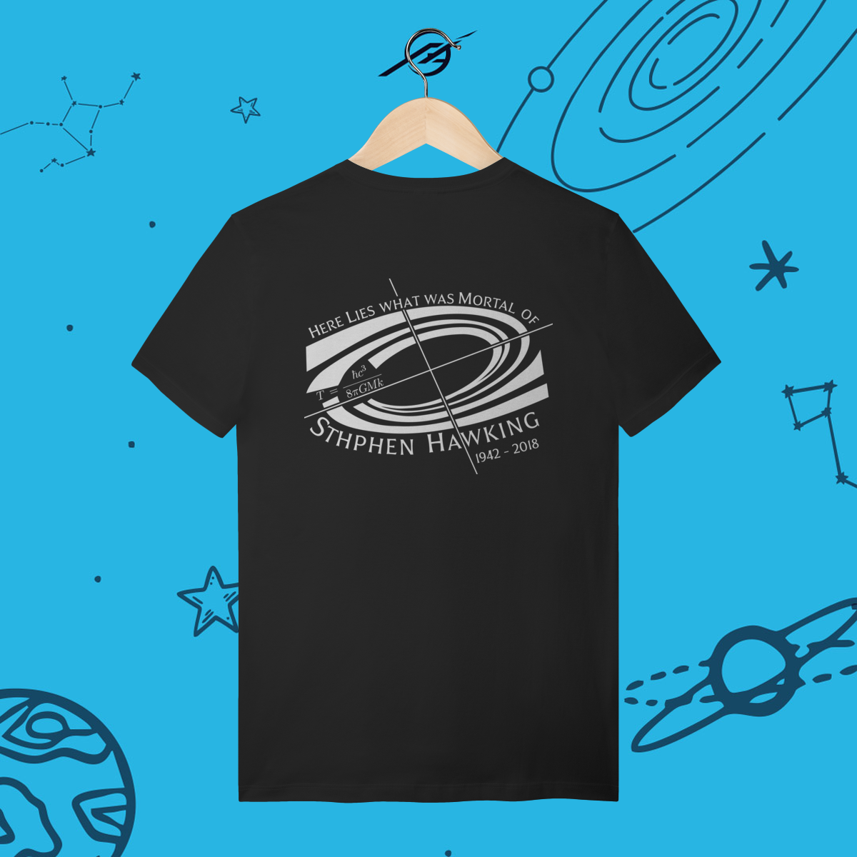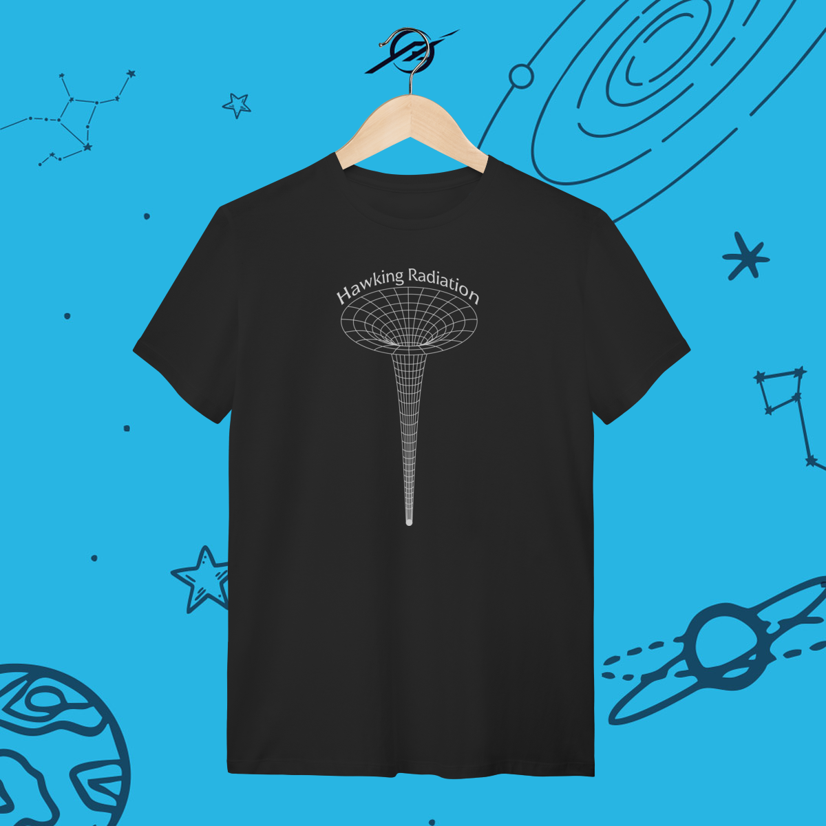 Explore o desconhecido com a nossa camisa Hawking Radiation, inspirada no fenômeno que mudou a física moderna: a ideia de que mesmo um buraco negro pode irradiar energia. Estampada com uma frase que une ciência e curiosidade, esta camiseta celebra o legado de Stephen Hawking e a audácia de questionar o impossível. Confortável, minimalista e cheia de significado, ela é perfeita para quem olha para o cosmos e sabe que o universo sempre tem mais para revelar. Saia de órbita e leve seu estilo para além do horizonte!