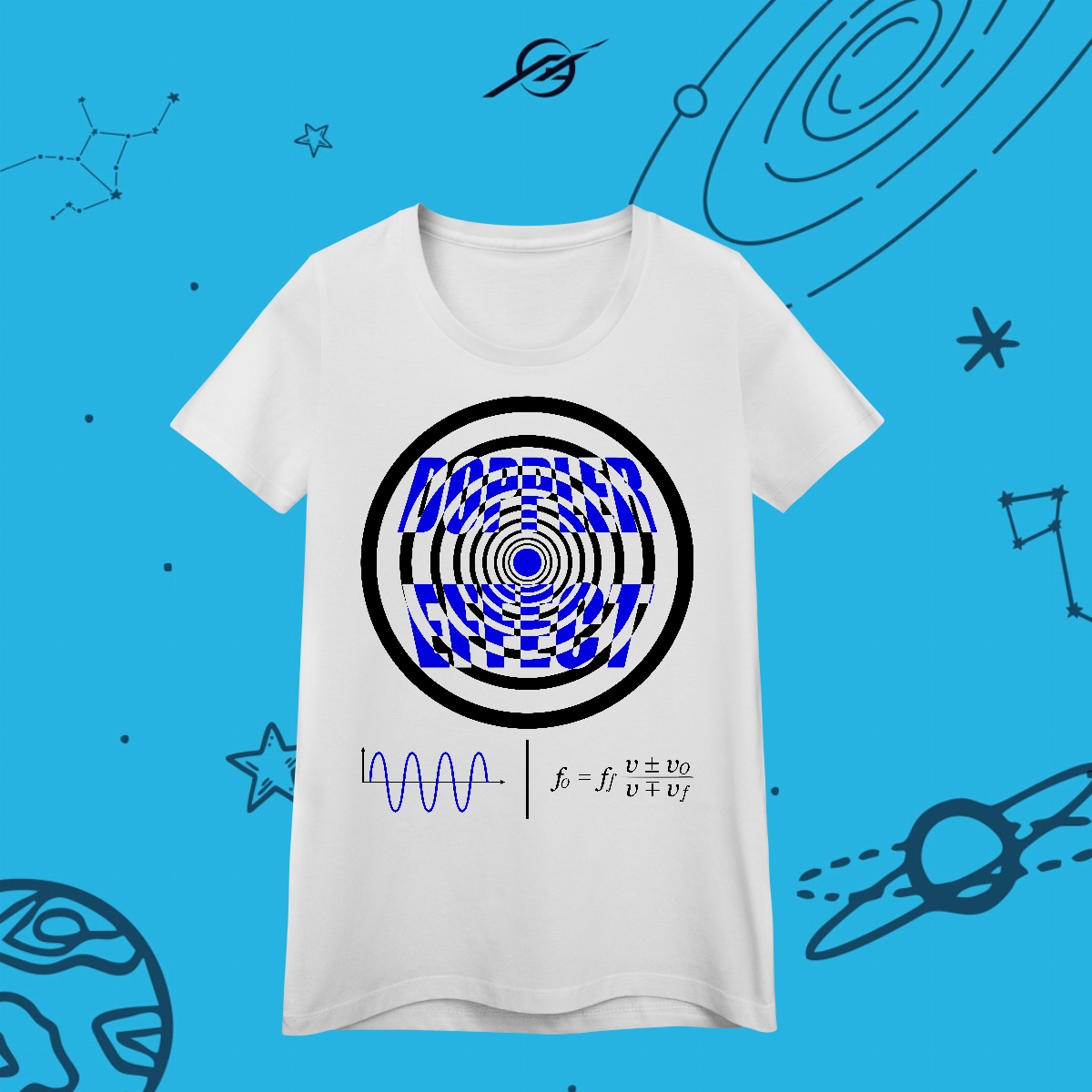 O Efeito Doppler revela como o som e a luz se distorcem quando uma fonte se move em relação a um observador, mudando o tom e a cor conforme a velocidade. Esse fenômeno nos ensina sobre a relação entre movimento e percepção no universo. Esta estampa simboliza a constante transformação, porque no cosmos, tudo está sempre em movimento, e nossa percepção é o que nos conecta a ele.