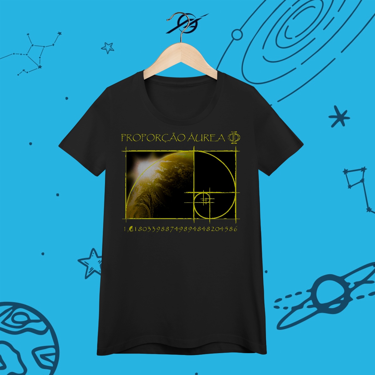 A Proporção Áurea é a assinatura matemática da beleza, presente na natureza, na arte e no próprio cosmos. De galáxias espirais a conchas marinhas, ela revela a harmonia oculta no universo. Esta estampa simboliza a perfeição do equilíbrio, porque a matemática não é apenas números, mas a linguagem da criação.