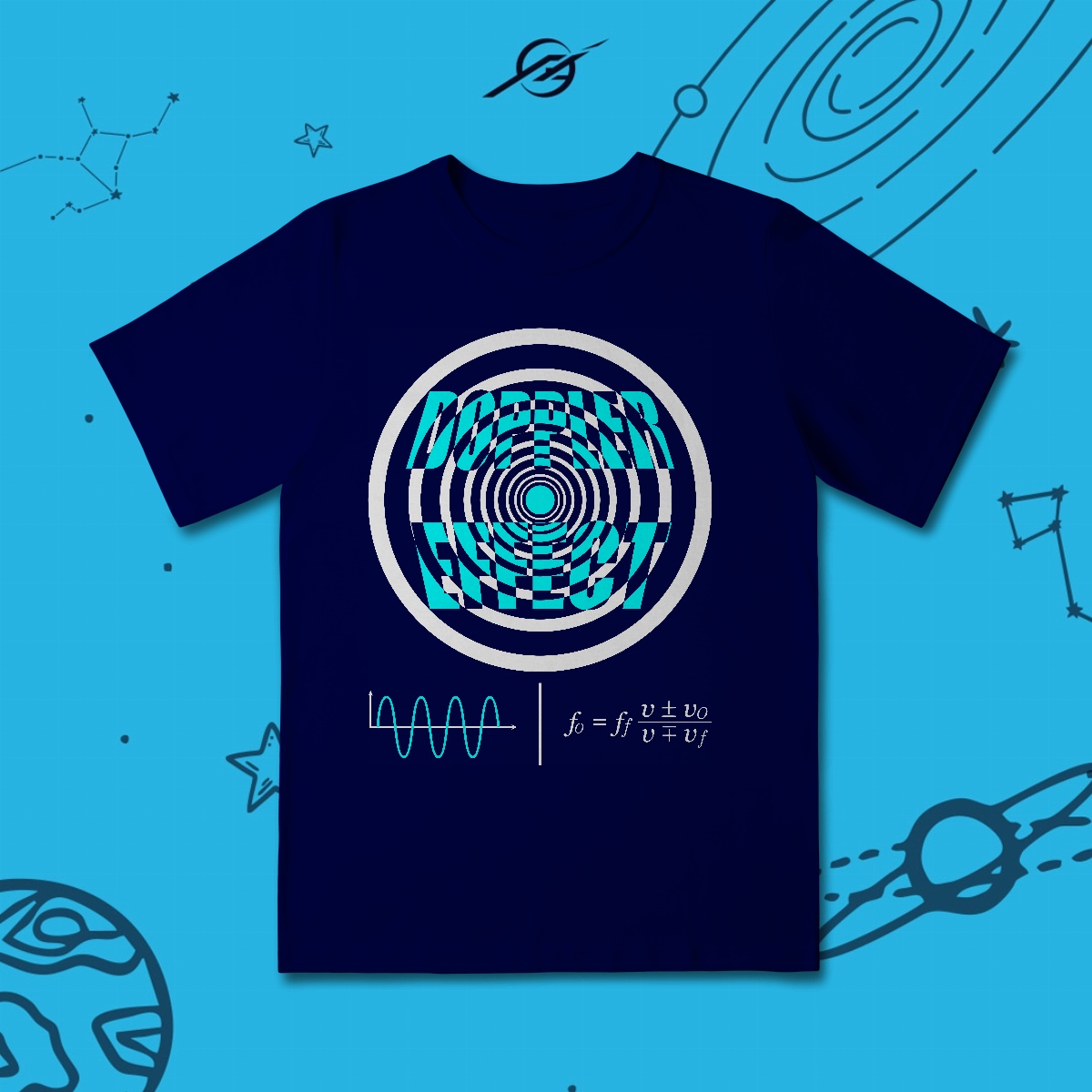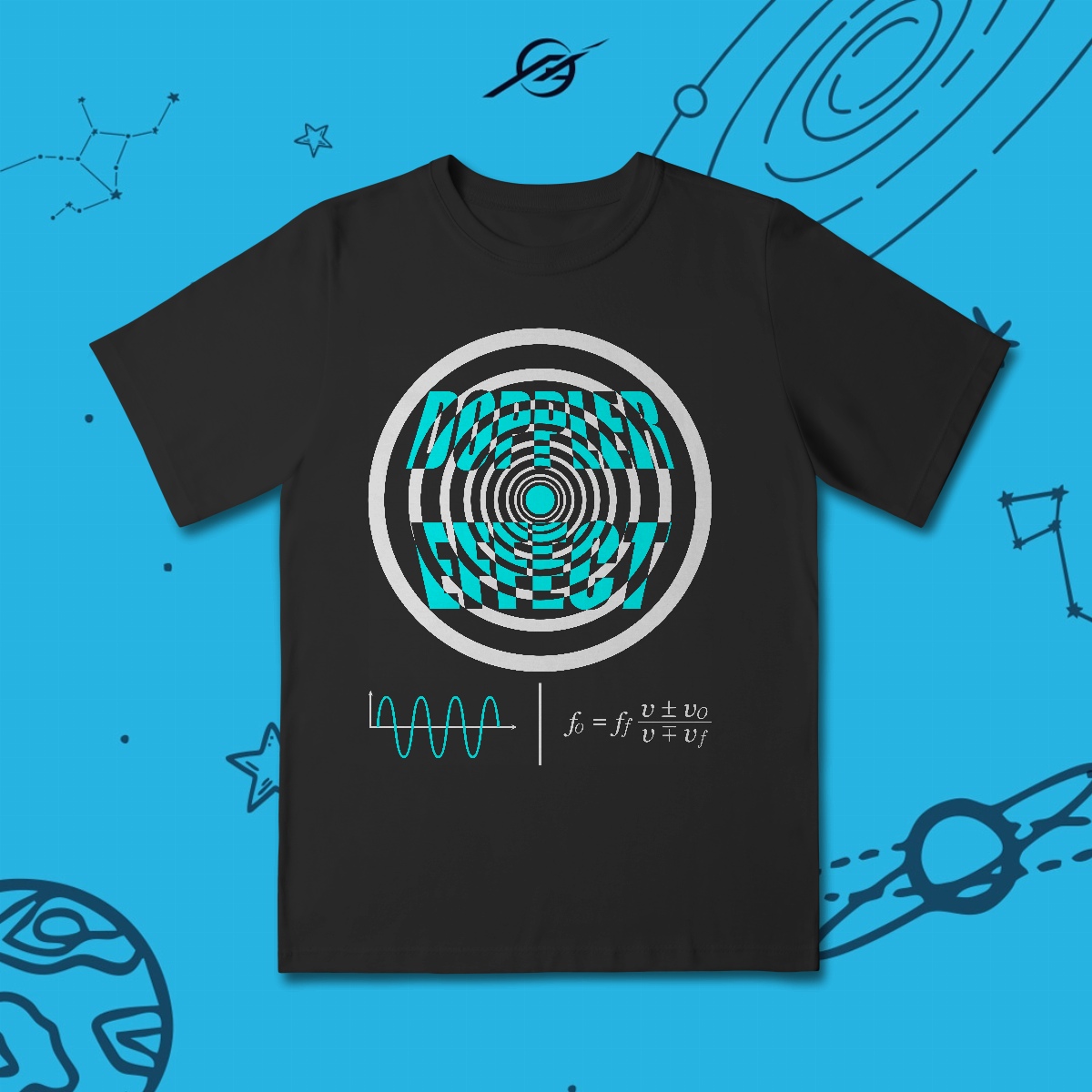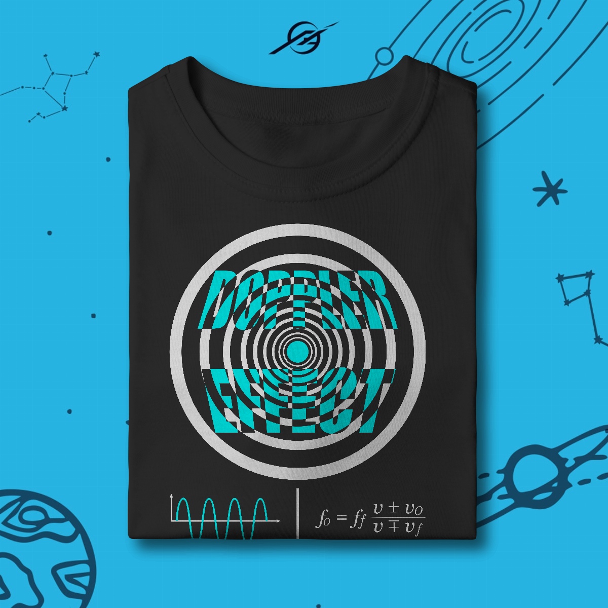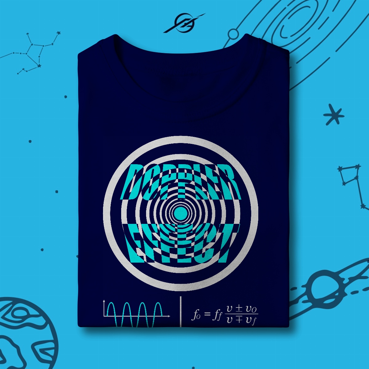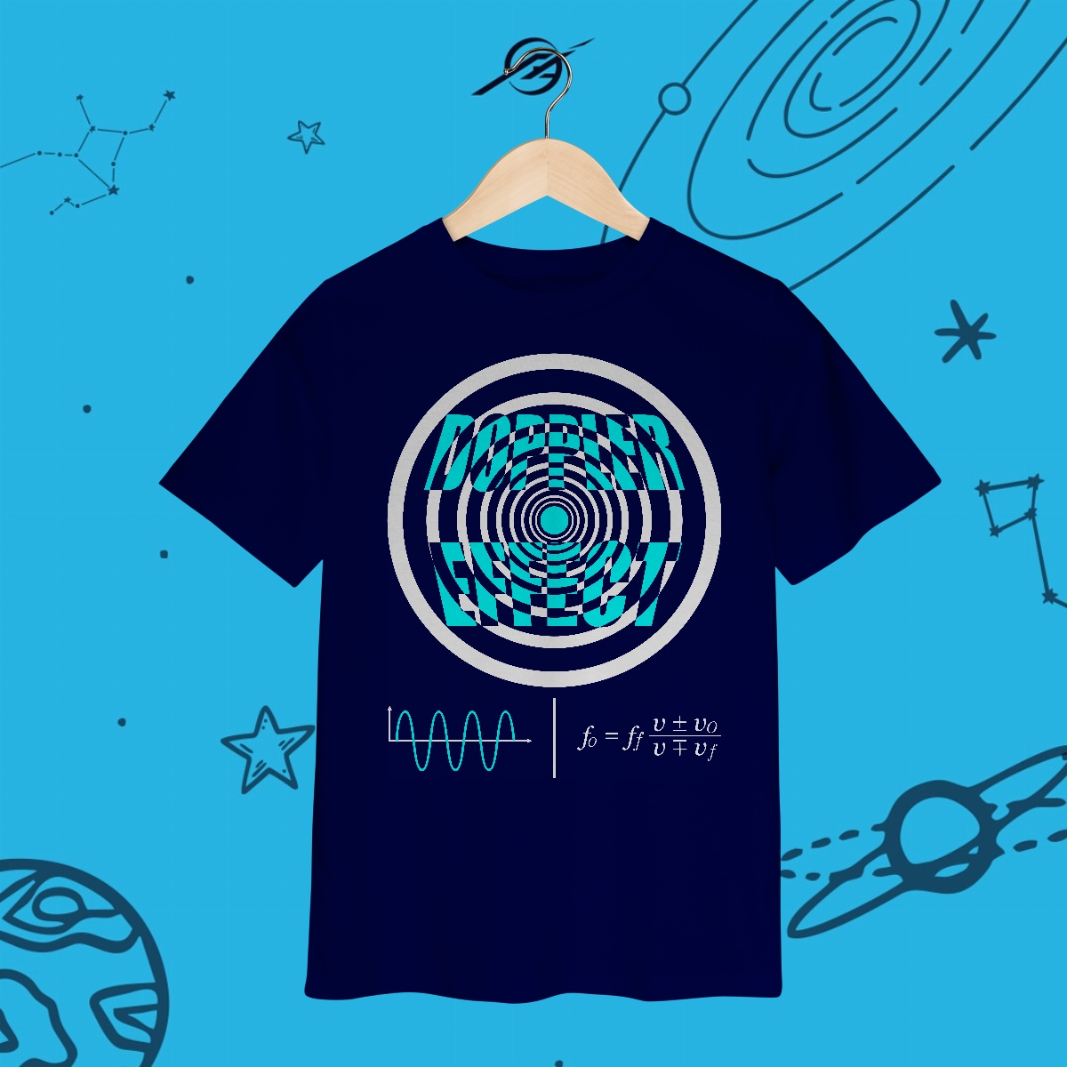 O Efeito Doppler revela como o som e a luz se distorcem quando uma fonte se move em relação a um observador, mudando o tom e a cor conforme a velocidade. Esse fenômeno nos ensina sobre a relação entre movimento e percepção no universo. Esta estampa simboliza a constante transformação, porque no cosmos, tudo está sempre em movimento, e nossa percepção é o que nos conecta a ele.