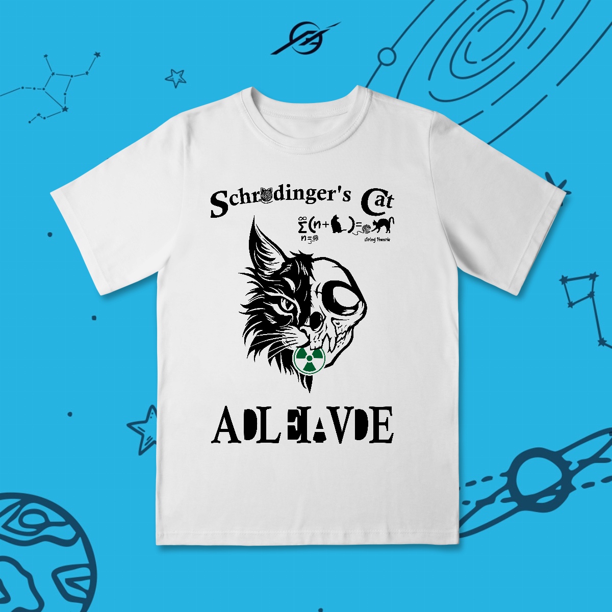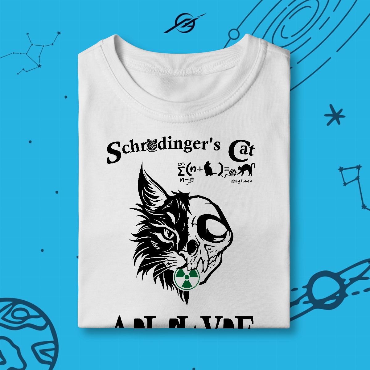 O Gato de Schrödinger é um experimento mental que desafia nossa compreensão da realidade quântica – vivo e morto ao mesmo tempo, até que alguém observe. No mundo subatômico, as possibilidades coexistem, nos lembrando que a realidade pode ser mais estranha do que imaginamos. Esta estampa simboliza o mistério e a dualidade do universo, porque questionar é o primeiro passo para entender.
