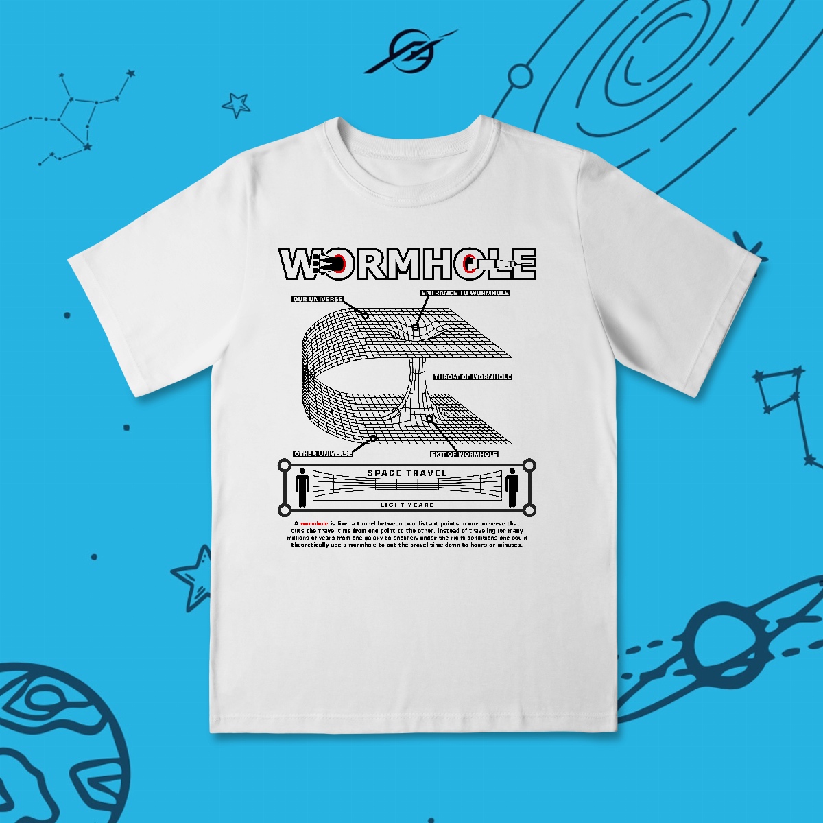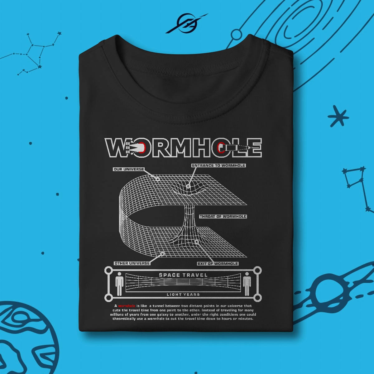 Os buracos de minhoca são passagens teóricas que conectam pontos distantes do universo, dobrando o espaço e o tempo em um atalho cósmico. Se existem ou não, ainda é um mistério, mas sua possibilidade nos inspira a imaginar novas formas de viajar entre as estrelas. Esta estampa simboliza a busca por caminhos além do óbvio, porque a exploração verdadeira rompe barreiras e desafia o impossível.