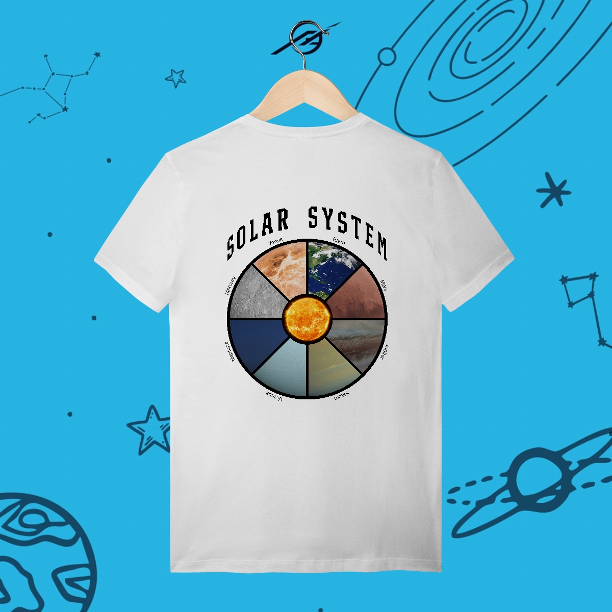 O Sistema Solar é nosso lar cósmico, um conjunto harmonioso de planetas, luas e asteroides dançando ao redor do Sol. Cada mundo tem sua própria história, mas juntos, formam um espetáculo celestial. Esta estampa simboliza a grandiosidade do lugar onde vivemos, porque entender nosso sistema é o primeiro passo para explorar o universo.