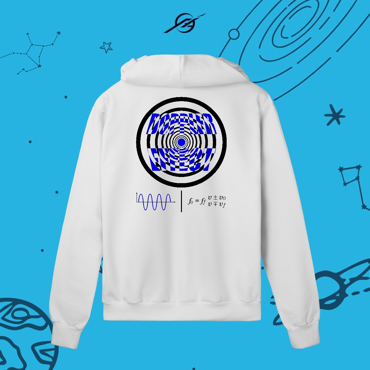 O Efeito Doppler revela como o som e a luz se distorcem quando uma fonte se move em relação a um observador, mudando o tom e a cor conforme a velocidade. Esse fenômeno nos ensina sobre a relação entre movimento e percepção no universo. Esta estampa simboliza a constante transformação, porque no cosmos, tudo está sempre em movimento, e nossa percepção é o que nos conecta a ele.