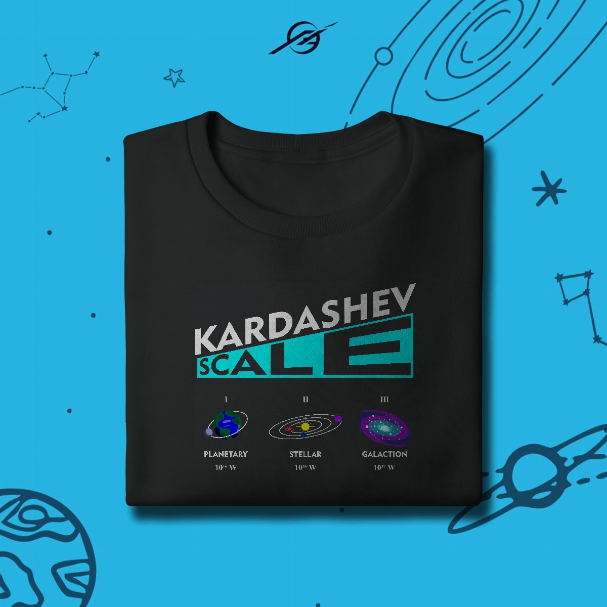 A Escala de Kardashev mede a evolução de civilizações pela energia que elas conseguem controlar. De uma civilização tipo I, que usa os recursos de seu planeta, até a tipo III, que domina a energia de toda a galáxia, ela nos desafia a pensar até onde podemos chegar. Esta estampa simboliza o potencial ilimitado da humanidade, porque explorar o cosmos é também expandir nosso poder e compreensão.